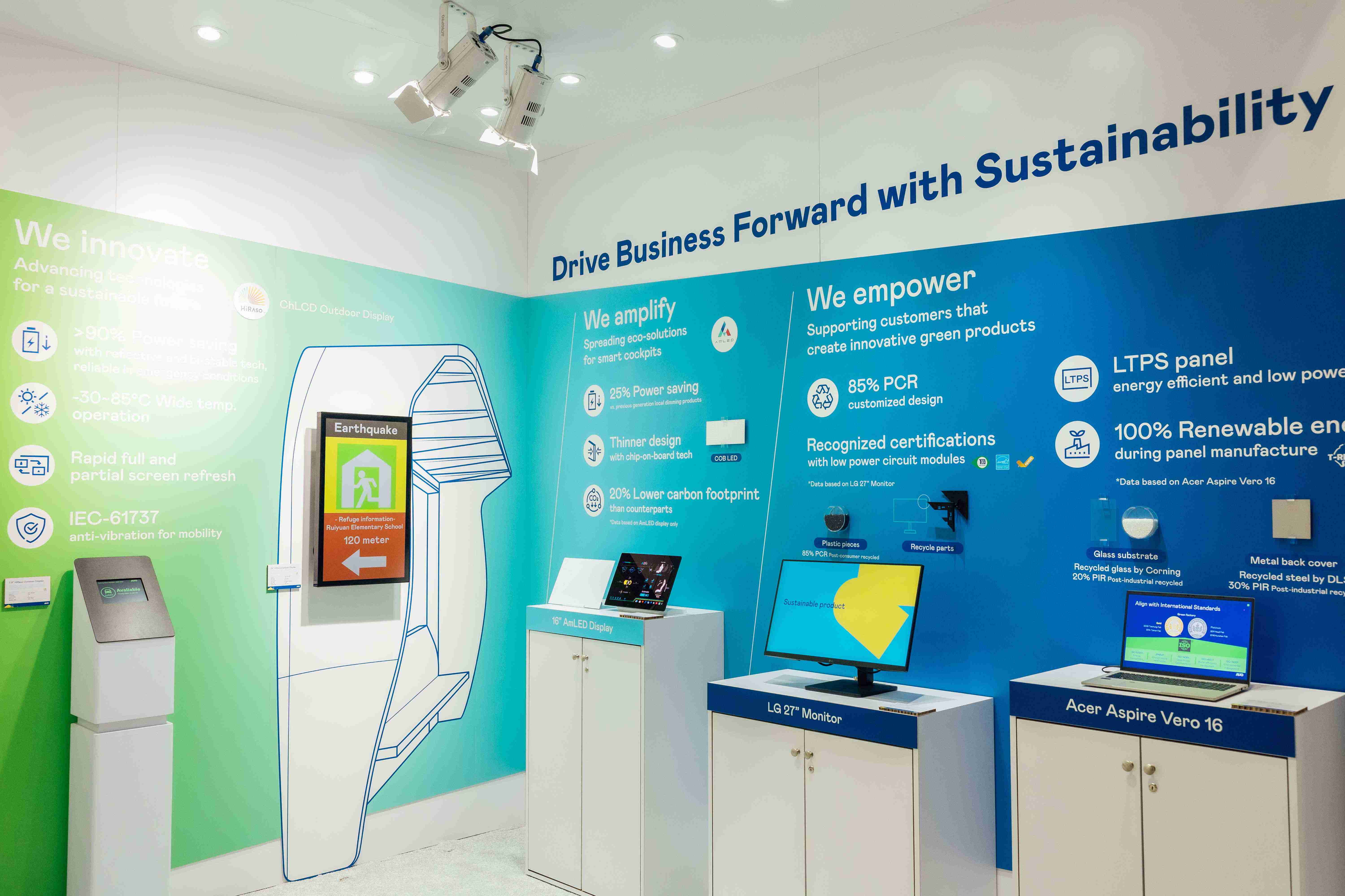 BHTC的木纹车用显示器(Display Behind Wood)将无缝木质表面与显示器结合后,,,可以融入车内设计中,,,,提供驾驶优质的视觉效果,,加上其无边框的设计和亮度调控,,,创造更优质的车内体验。。。 CG电子展出多项领先业界绿色科技 助攻客户达成低碳目标 CG电子致力于永续发展,,,,从产品生命周期自原料、、制程至使用等每个阶段,,,,发展低碳方案,,,在CES 2025展位上分享已实际应用在终端消费性电子产品上的绿色科技外,,,未来将更进一步移植多年累积的成功经验导入车用产业,,为客户实现永续价值,,满足客户对产品的绿色低碳设计要求