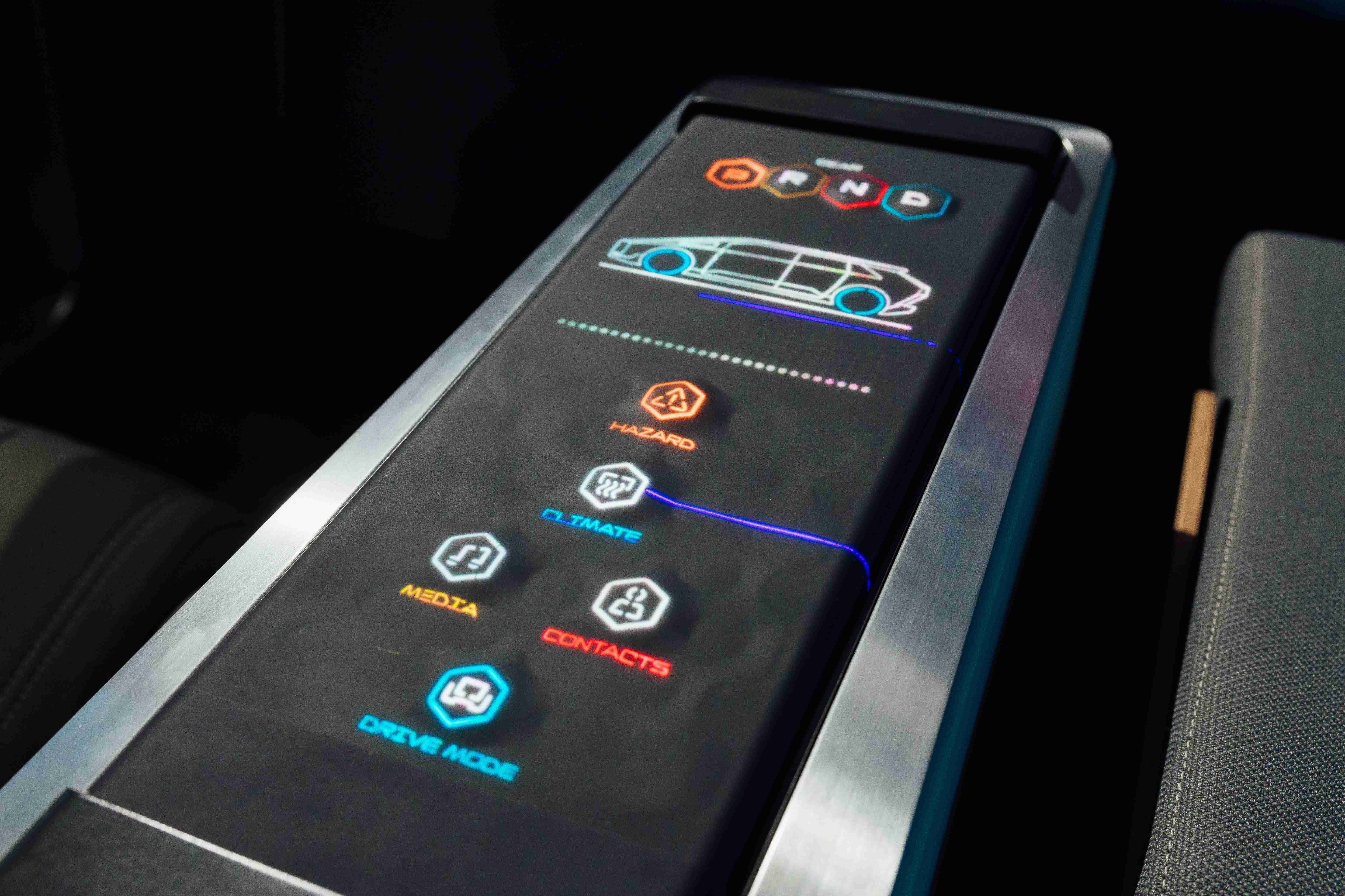 幻境全景天幕(Virtual Sky Canopy)将无缝拼接大型化的透明Micro LED显示器融入至天窗,,,,带来沉浸式体验,,,将人机介面扩展至整个座舱。。。。 CG电子光电以人性化的设计引领直觉式的人机互动,,透过多变形态中控显示(Morphing Center Control)、、隐藏式智驾介面(Foldable Cruise Pilot)等解决方案,,,,让乘用者依据自身需求调整、、控制座舱内所需功能。。